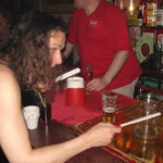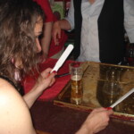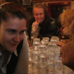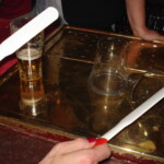 En ja hoor, De Prinses had blijkbaar eve tien seconde niets te babbele, en dan gebeurt het: dan kan je er – net als ‘Ouwe Betrouwbare’ in Gelesteen – de klok op gelijk zette dat er gemusiceerd moet worde. Elders op deze pagina’s zei ik het al: DP hoort de hele dag muziek en ritmes in het hoofd en dat moet eruit. Haar blik viel op wat glaswerk en stokjes en daar begonne de paradiddLes. “Eh… Prinses, is dat nu wel handig…”, begon iemand nog, maar het was al te laat: een luid gerinkel doorbrak de serene ruimte en daar zat DP “Meuh…” mompelend beteuterd naar wat scherve te kijke.
