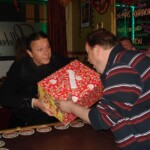 Dan zijn natuurlijk uw Laaglandische Sinterseklaasdage een prima gelegeheid om gezellig weer in de Prinsesselijke Pen te klimme, en zo toge wij begin december 2012 Laaglandische jaartelling met heimwee, nostalgisch gemoed en met een doos vol ingepakt lekkers en gedichtjes naar ons geliefd etablissement in Hamsterdam – waar wij door omstandighede al te lang niet geweest ware – en gelukkig was onze lieve Hans aanwezig, en waarachtig ook Jonkheer E. Als Ik Het Huizinga! Het was een fijne, gezellige avond en heerlijk om weer eve bij te prate!