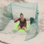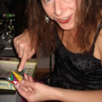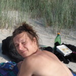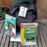 Maar uiteindelijk – hoe gezellig alle gezamelijke activiteite ook zijn – denk ik wel eens; aan het eind van de dag is De Prinses het meest tevrede en in haar sas het liefst op het strand, ver van alle drukte, met haar onafscheidelijke zwarte rugzakje waarin sinds jaar en dag slechts het hoognodige meegenome wordt: een handdoekje, Lesleyquiditeite als een flesje water, een miniflesje spiritualiën, een zakje drum, een klein zakje gras om het hoofd rustig te krijge, een doosje Fisherman’s Friend, een bakje met bammetjes, met daarop ham en kaas, of ei met rode bolle in plakjes, veel peper en pretpoeder en… haar meer dan twintig Laaglandische jare oude pakje speelkaarte, opschrijfse boekje, opschrijfse blaadjes, penne, potlode en haar onafscheidelijke puzzelboekjes.