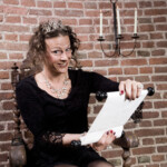 Als u minder geluk heeft loopt u onze Hofsecretaresse Joke de Truffer tegen het lijf. Zij bestiert de dagelijkse gang van zake en weet onze enthousiaste opwellinge altijd in goede bane te leide. Voor vele komt zij nog wel eens kittig, pittig, mogelijk intimiderend over – voor sommige bijkans als een karonje – zeker als u ooit gesommeerd was op audiëntie te kome in haar privévertrekke in de kelder, maar dat schept wel duidelijkheid. Dit gezegd hebbende; regelmatig maken sommige onderdane vrijwillig en op eige initiatief vervolgafsprake bij Joke. Hieronder maakt u kennis met een meer ontspanne en goed geluimde Joke in een van haar gezellig ingerichte, en van alle gemakke voorziene werkvertrekke. De zwarte driewieltrapper gebruikt ze als ze eve snel een boodschap moet overbrenge naar de Koning in Zilverland.