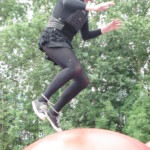 Soms denkt men wel eens dat wij niets anders doen dan rondkuiere door ons kasteel en haar tuine, dagdrome in prieeltjes, muziekjes make, onze hare kamme of rondrijde in onze Koninklijke Koets, maar dan vergist men zich! Wij zijn zeker geen slappe-pap-prinses! Ook wij zijn immer te porre voor sportieve aangelegehede zodat wij steevast ter plekke een vogelnestje kunnen maken of onze hande plat op de grond legge met gestrekte bene. Wederom hebbe wij onze Hofsecretaresse Joke gevraagd of zij een paar leuke, sportieve kiekjes of filmpjes kon opsnorre.
